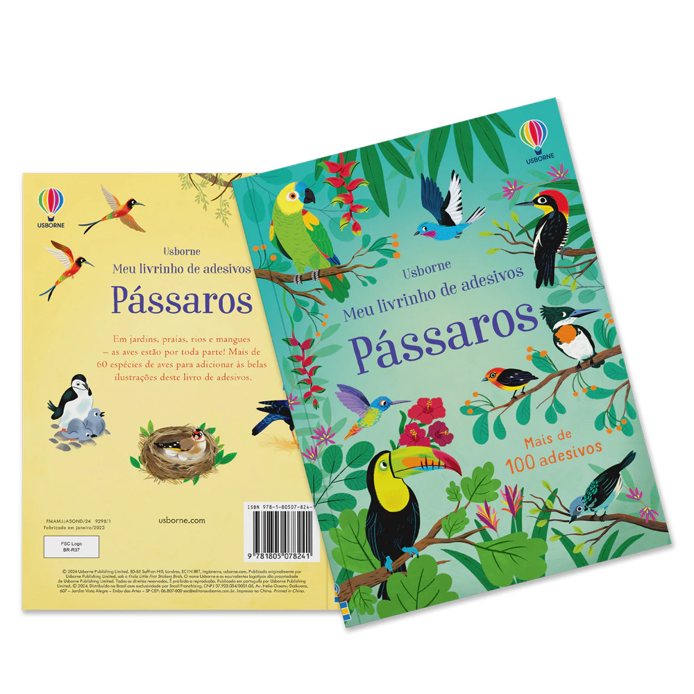 Com a ajuda deste divertido livro, as crianças vão se divertir vendo uma variedade de pássaros de todo o mundo, desde flamingos e pinguins até tucanos e beija-flores, além de pássaros que podem ser vistos no dia a dia. Elas aprenderão sobre o comportamento dos pássaros também e poderão usar os mais de 100 adesivos para decorar as cenas vibrantes.